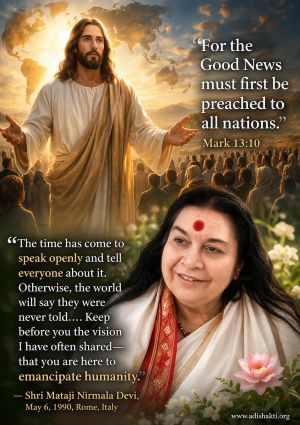 “On May 6, 1990, at the twenty-first Sahasrara Puja in Fiuggi, Italy, Shri Mataji Nirmala Devi issued a definitive mandate to Her followers: the era of silence was over, and the time had come to openly proclaim Her identity as the Adi Shakti, the Paraclete promised by Jesus Christ, and to announce the commencement of the Last Judgment and Resurrection to the entire world. This paper examines the ...”